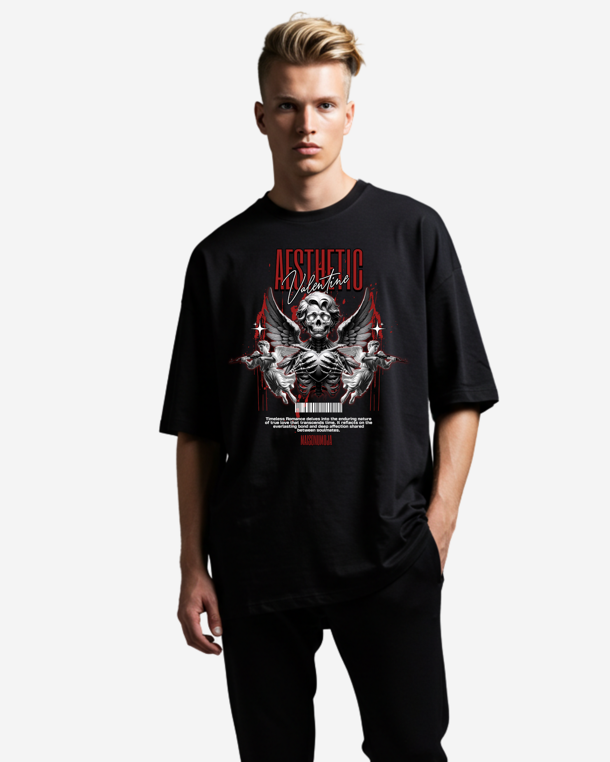 Bring a fresh, trendy vibe to your wardrobe with the Aesthetic Valentine Energy Oversized T-Shirt. Featuring a bold and artistic Valentine-inspired graphic, this tee combines a roomy oversized fit with soft, breathable 100% cotton fabric. Perfect for casual days, layering, and sharing the love in style.