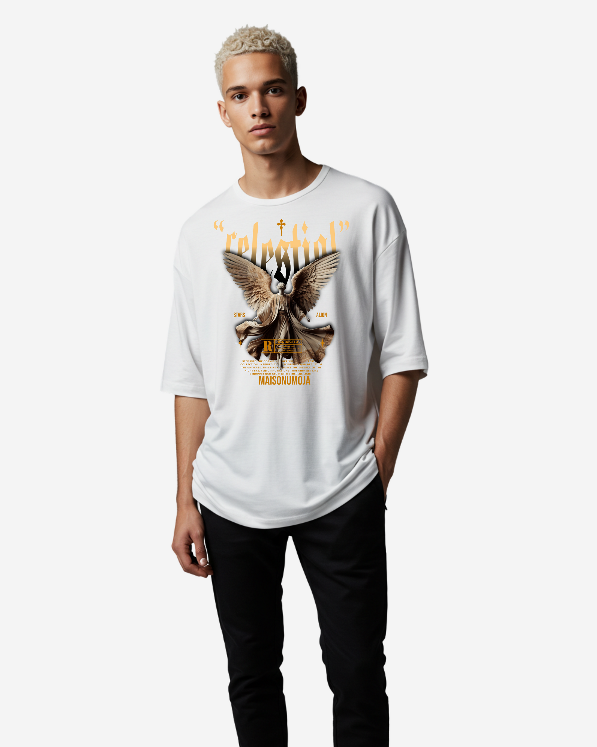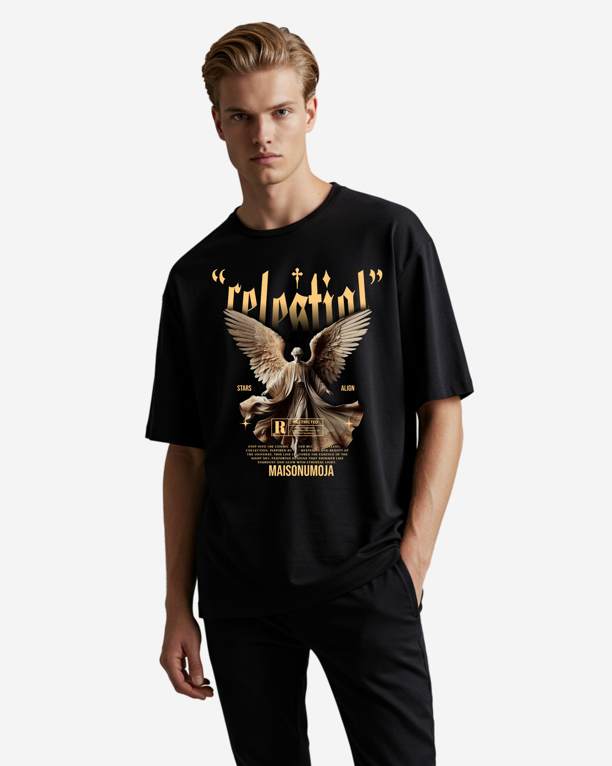 The Celestial Oversized T-Shirt brings space-inspired style down to earth. Featuring a bold graphic that channels stars, energy, and higher thinking, this tee delivers a clean streetwear look with all-day comfort. The oversized fit gives you room to move, while the design keeps your vibe elevated.