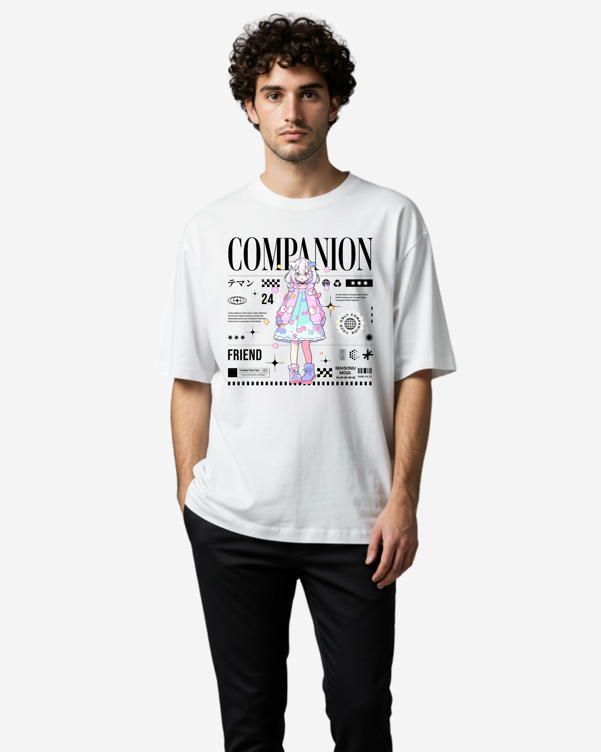 Celebrate connection with the Companion Oversized T-Shirt. Featuring a thoughtful, minimalist graphic that symbolizes trust and presence, this tee blends emotional depth with a clean streetwear edge. Crafted from 100% soft, breathable cotton in a relaxed oversized fit for ultimate comfort.