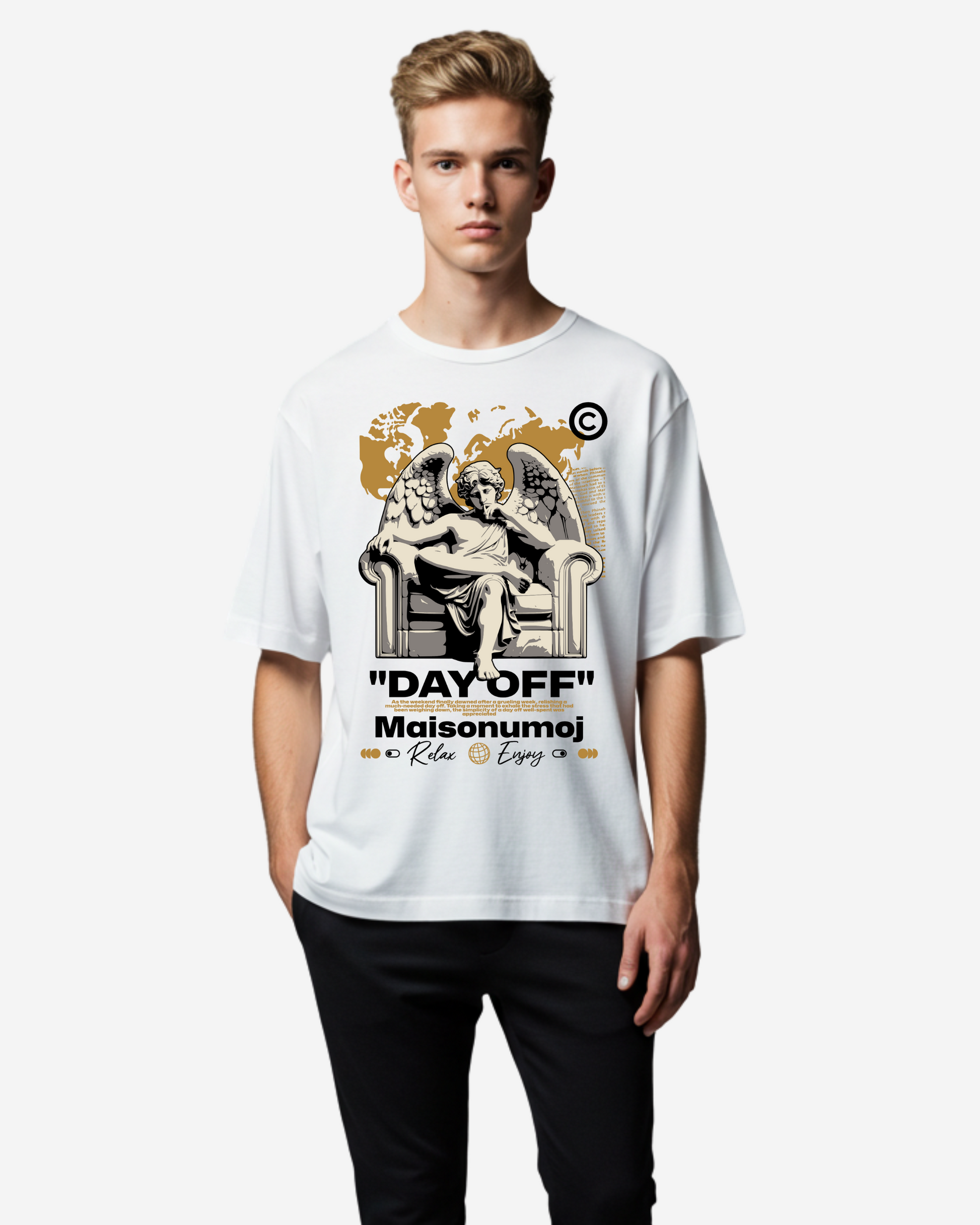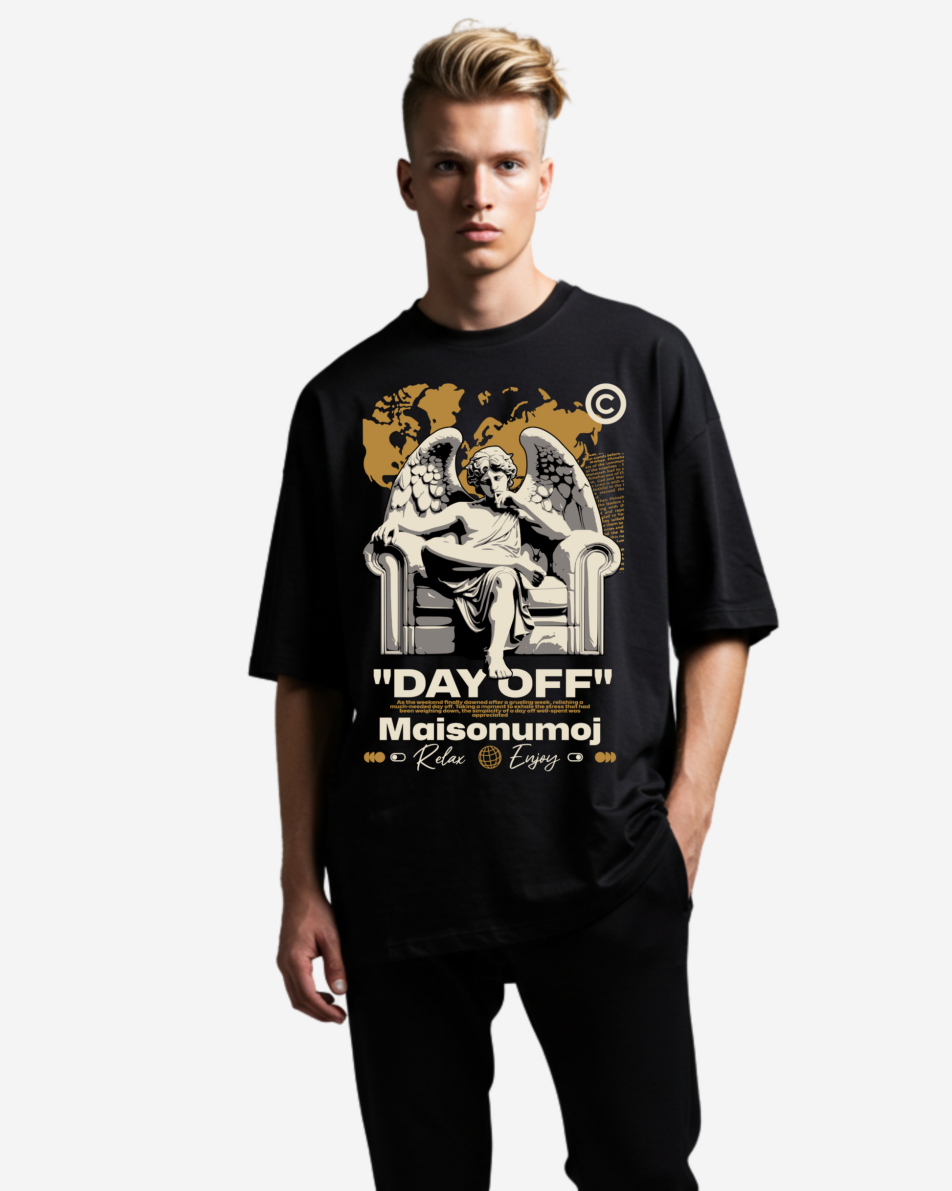 Take it easy with the Day Off Oversized T-Shirt, made for those well-deserved breaks when comfort is key. Featuring a clean, bold graphic that celebrates downtime, this tee pairs streetwear style with a laid-back fit. Crafted from soft, breathable cotton, it’s perfect for chilling out or casual outings.