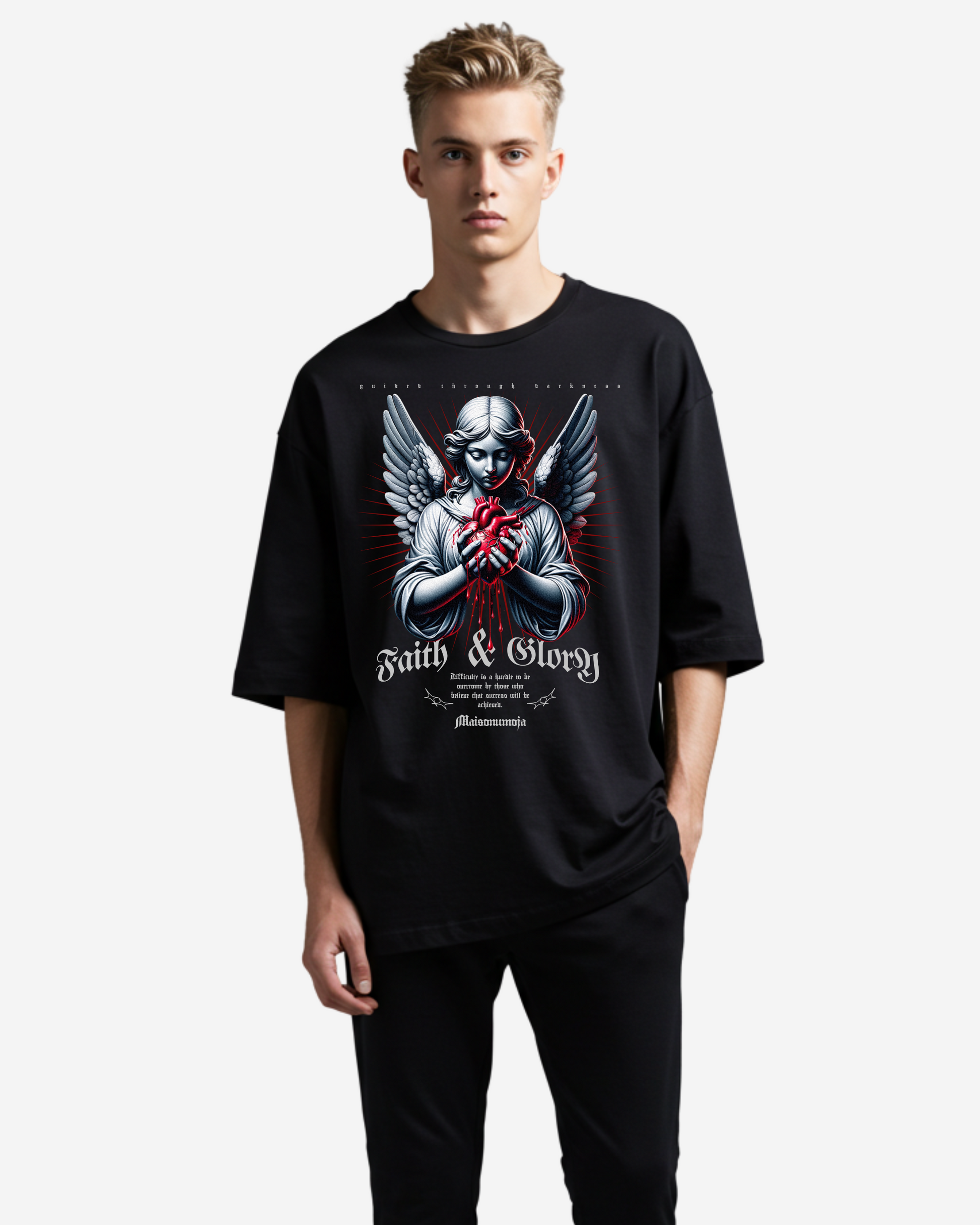 Wear your purpose with pride in the Faith & Glory Oversized T-Shirt. Featuring a bold graphic that blends spiritual energy with fearless confidence, this tee delivers a relaxed oversized fit crafted from 100% soft, breathable cotton. Designed for those who carry faith and move with power.