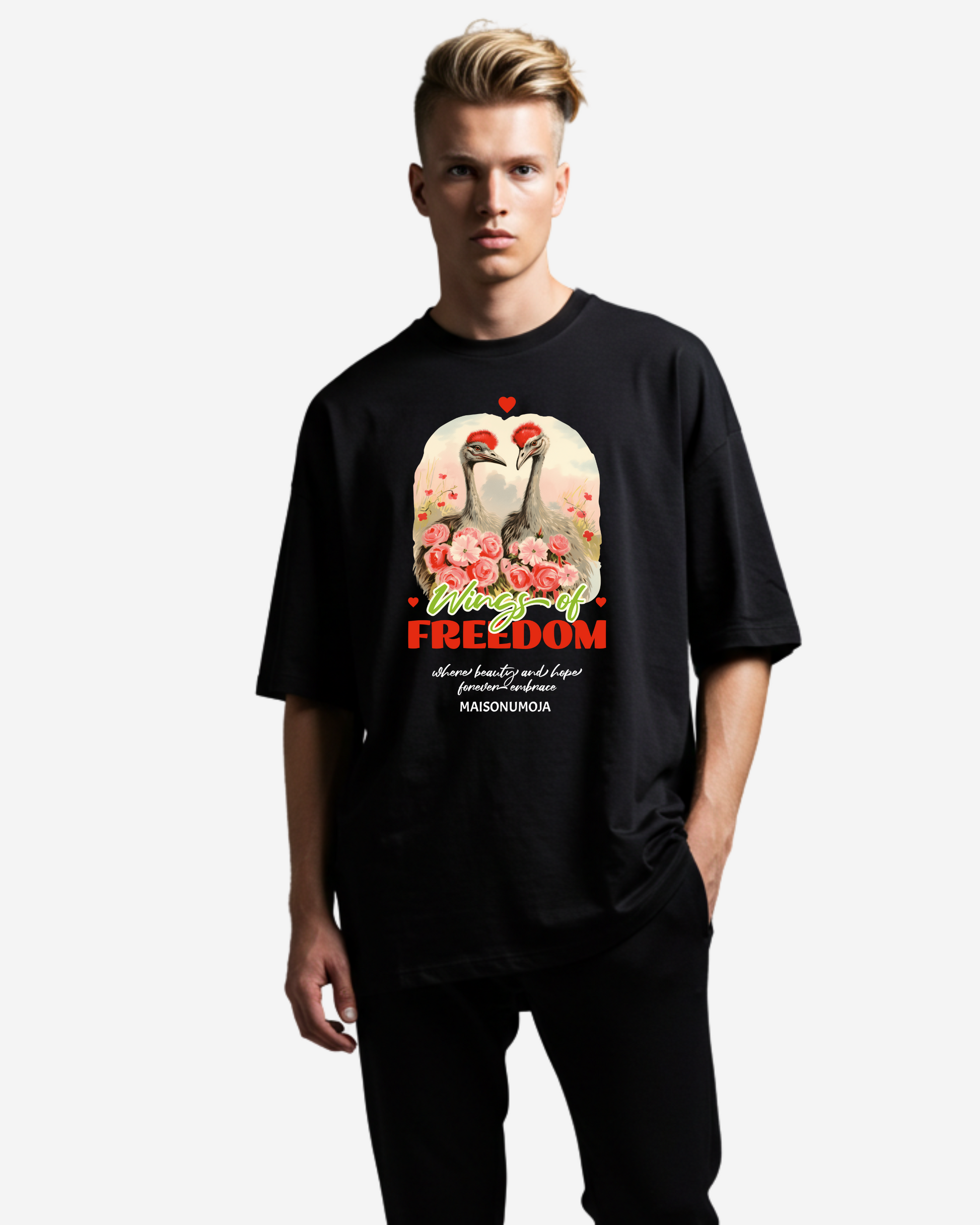 Break the limits with the Freedom Oversized T-Shirt. Featuring a striking graphic that represents independence and fearless energy, this tee is all about owning your space. Made from 100% soft, breathable cotton with a relaxed oversized fit built for comfort and expression.