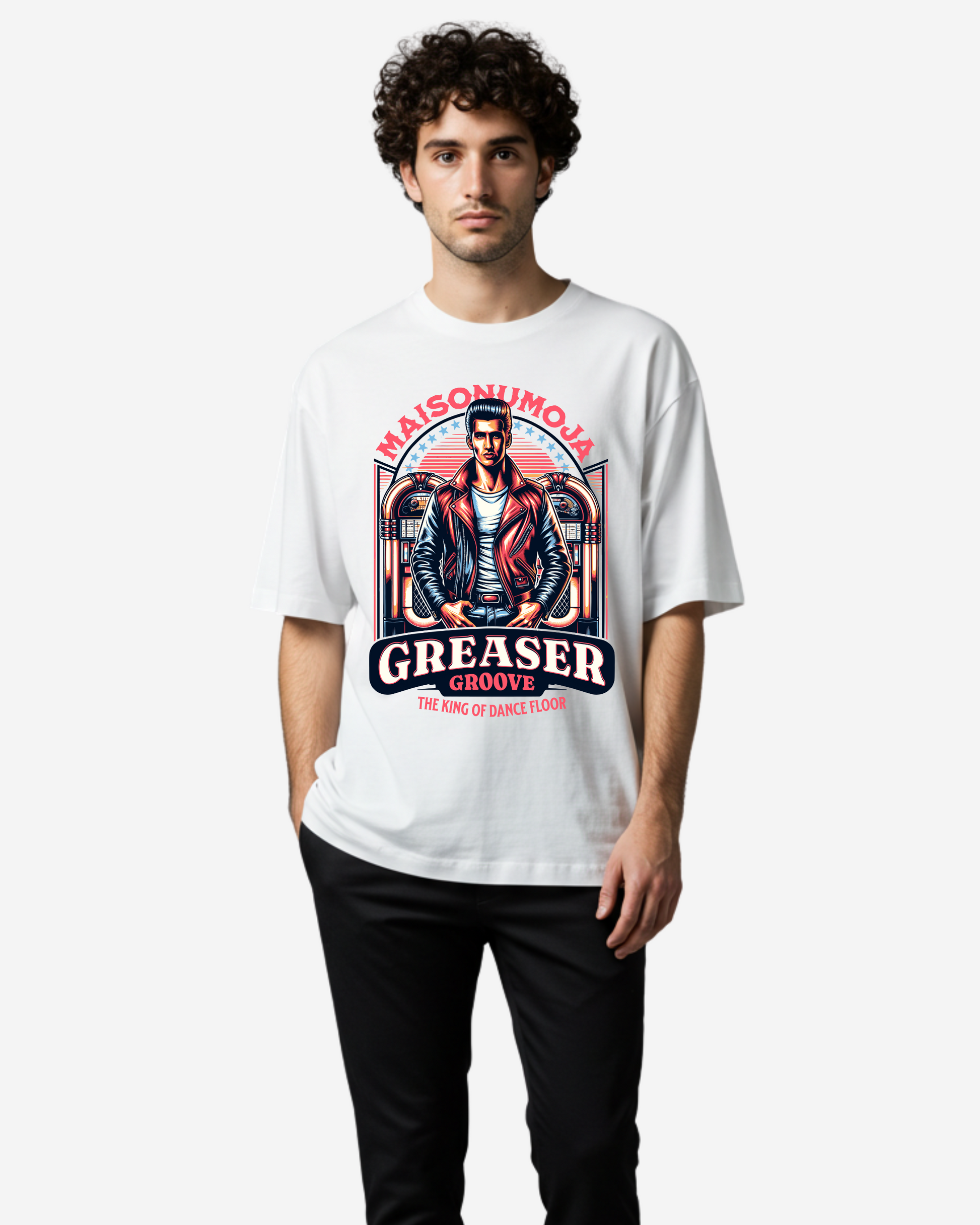 Greaser Groove Oversized T-Shirt – Vintage Vibes with a Bold Beat