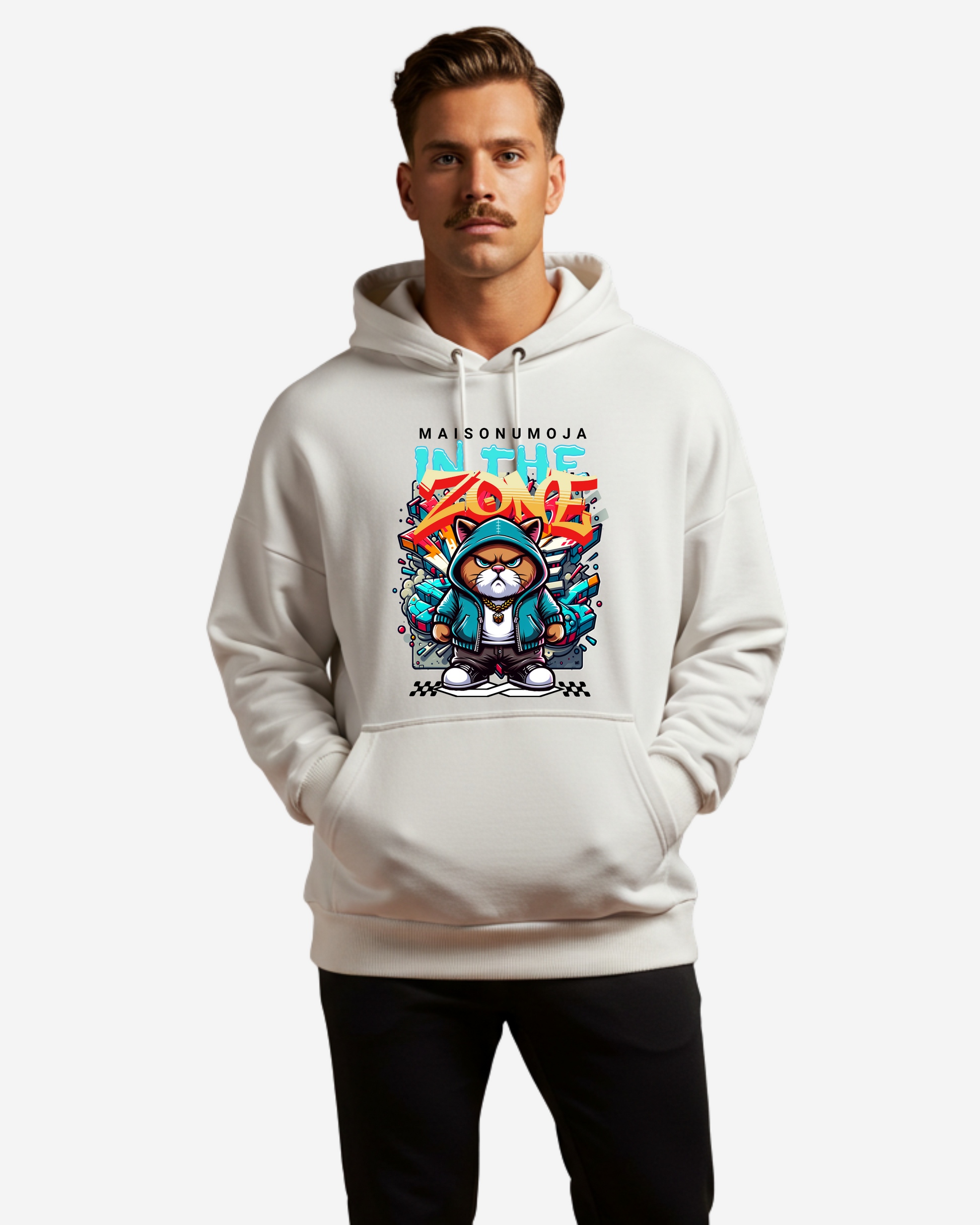 Step into the rhythm of unstoppable energy and street-ready style with the In The Zone Oversized Hoodie, a design that embodies confidence, movement, and urban charisma. Featuring a dynamic character rocking a teal hoodie, bold chain, and sneakers, this hoodie captures the essence of street culture, personal style, and the thrill of being fully locked in. The electrifying graffiti-inspired background adds intensity, reinforcing the theme of expression through motion and fearless individuality.