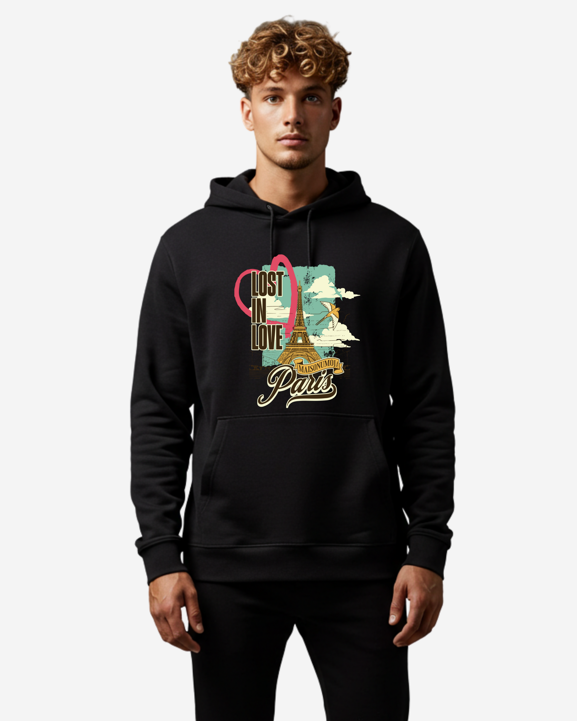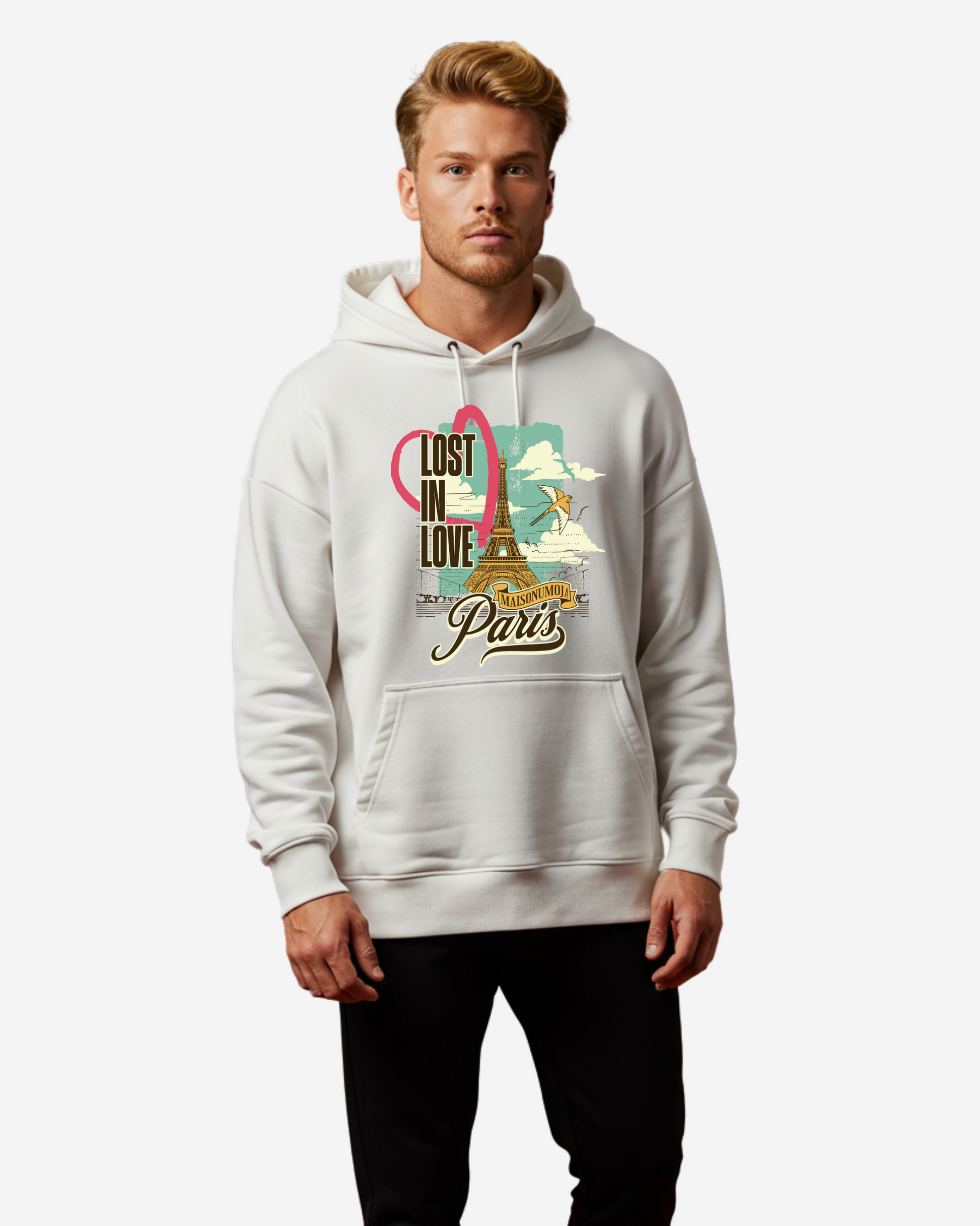 Step into the romantic allure of Parisian dreams and timeless love with the Lost in Love Paris Oversized Hoodie, a design that embodies passion, nostalgia, and the magic of the city of love. Featuring a detailed Eiffel Tower illustration beneath a floating heart, this hoodie evokes wanderlust, sentimentality, and the poetic essence of Paris. The bold “Lost in Love” typography reinforces the theme—a tribute to fleeting moments, deep emotions, and unforgettable connections.