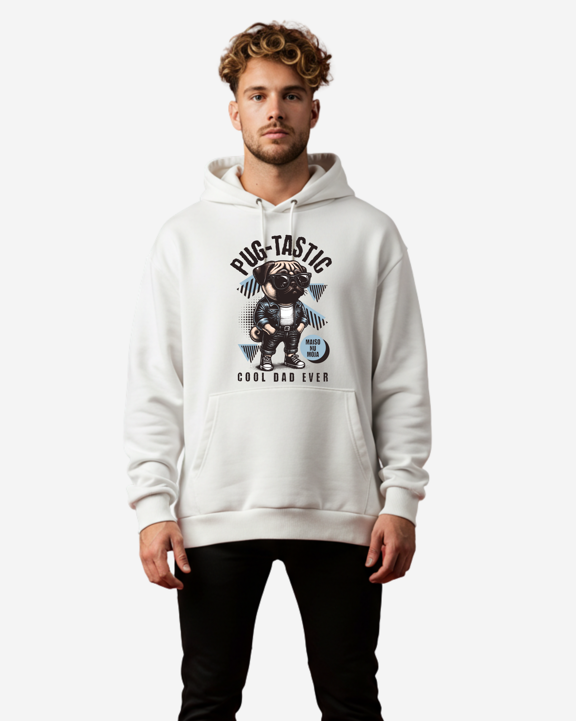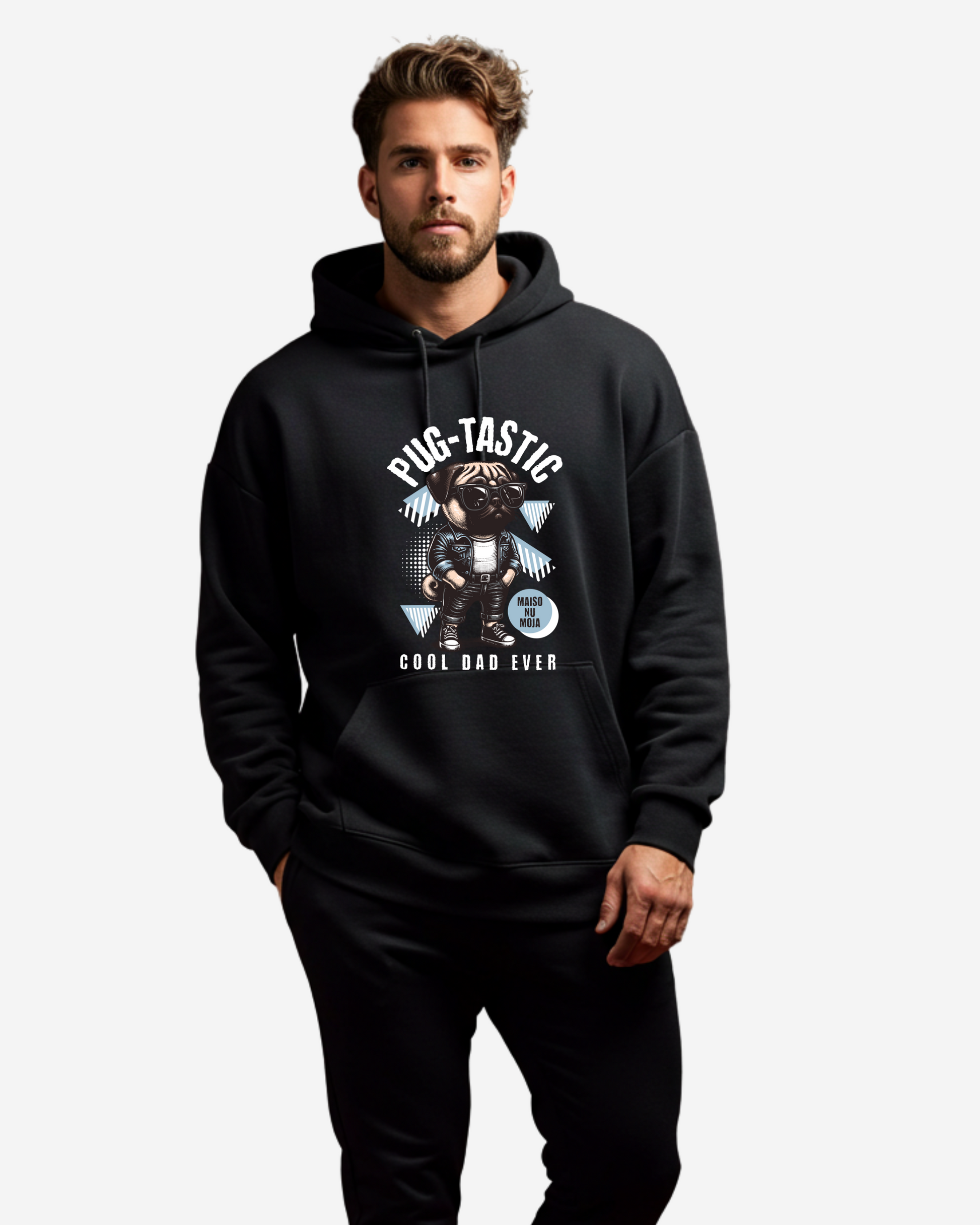 The Pug-Tastic Oversized Hoodie brings playful charm and urban flair together. Featuring a stylish pug dressed in a denim jacket, sunglasses, and sneakers, this design captures quirky personality and effortless confidence. The bold “PUG-TASTIC” typography reinforces its fun and lighthearted aesthetic.