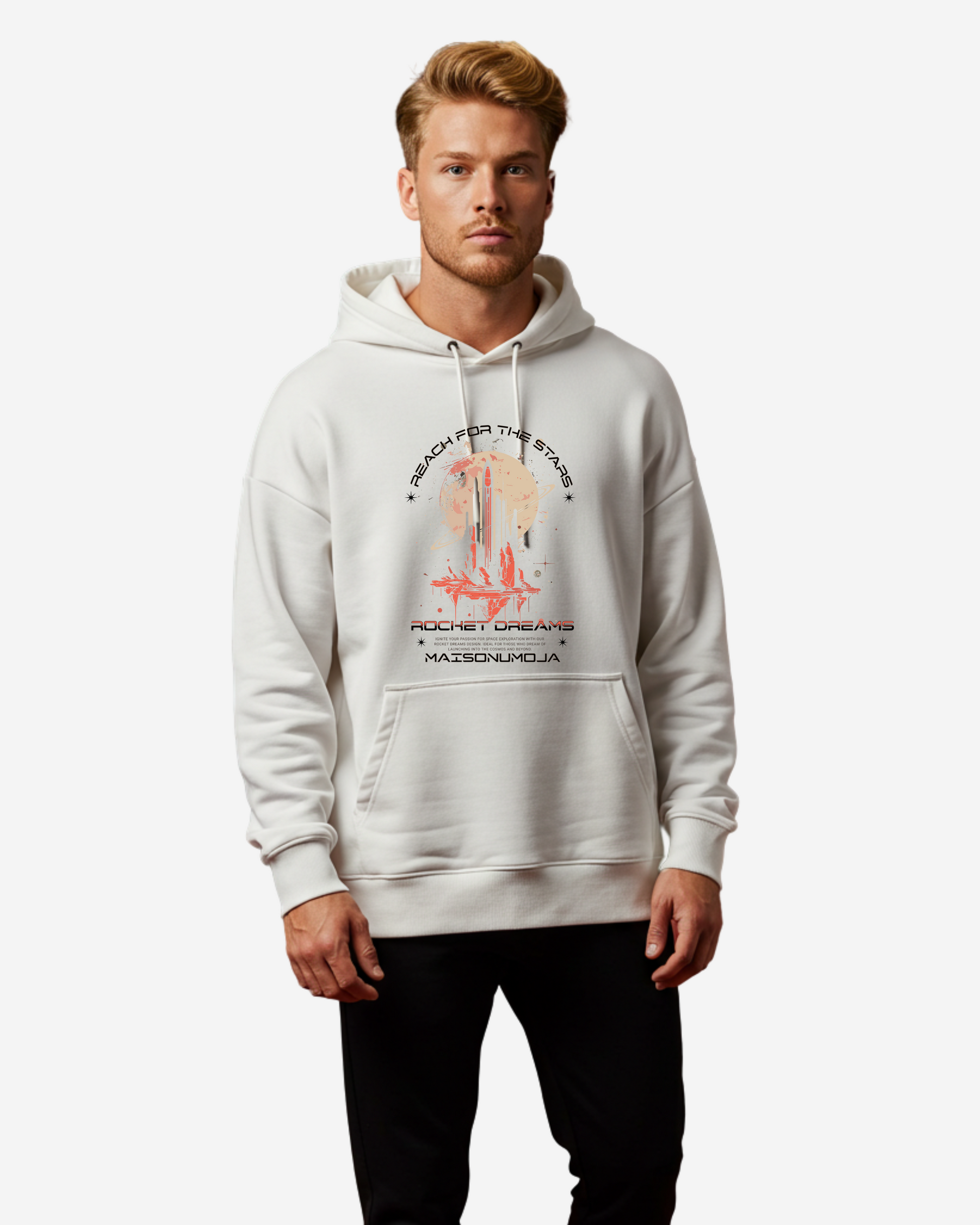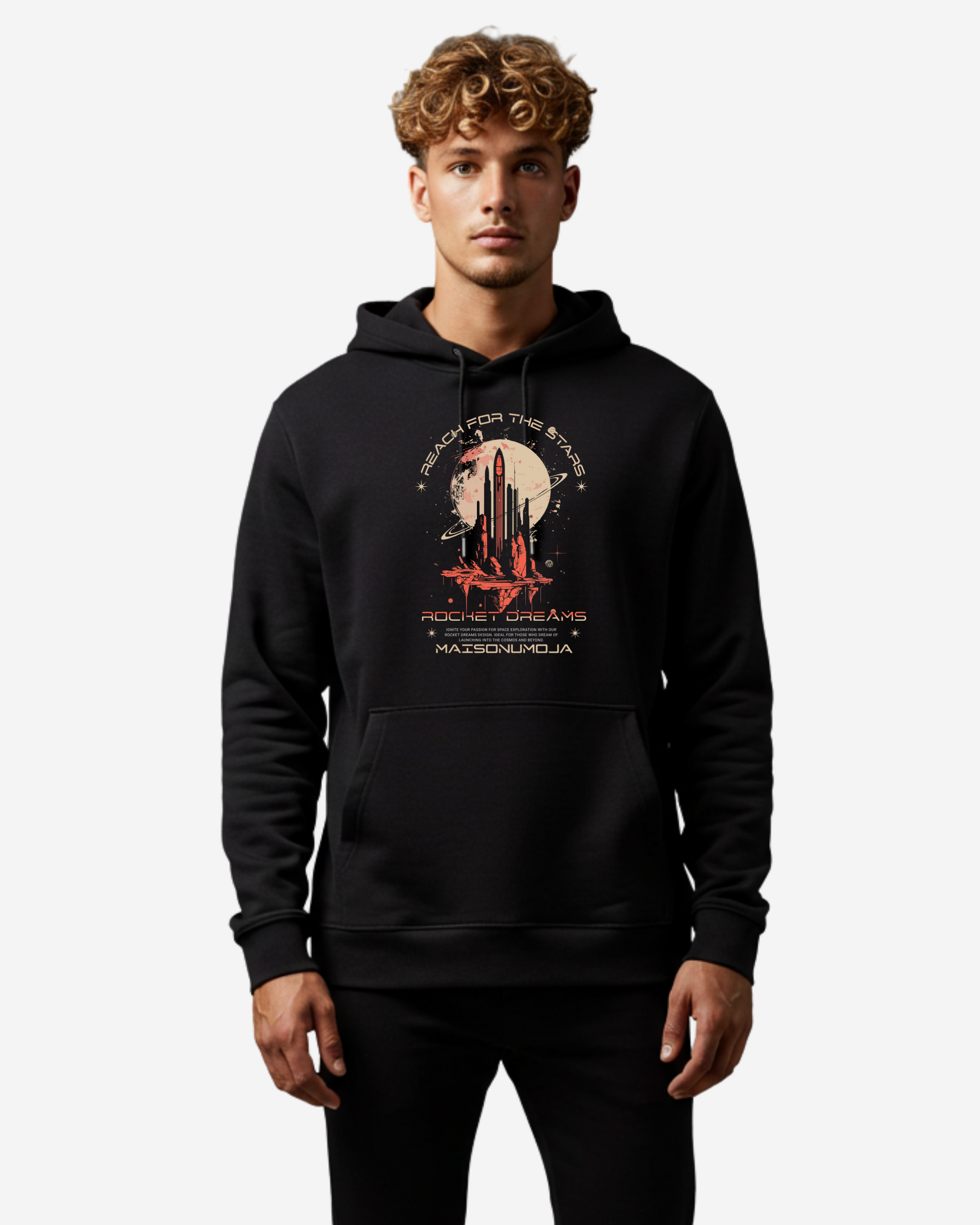 The Reach for the Stars Oversized Hoodie embodies the spirit of ambition and exploration. Featuring a striking rocket launch with a planet and cosmic elements in the background, this design captures the excitement of reaching beyond boundaries and chasing dreams.