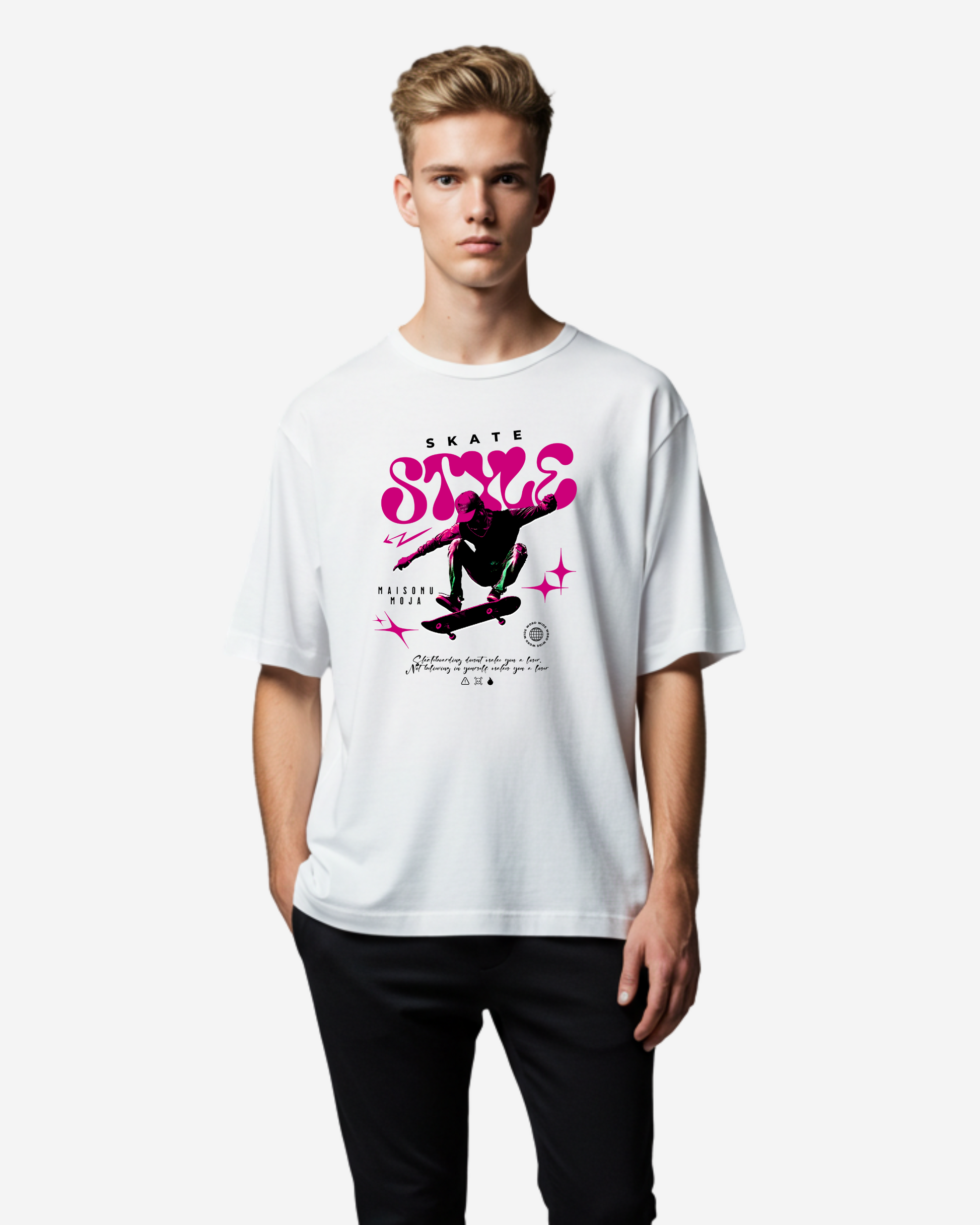 Drop into comfort and attitude with the Skate Style Oversized T-Shirt. Featuring a bold, skate-culture-inspired graphic, this tee delivers laid-back energy with a streetwear edge. Crafted from 100% soft, breathable cotton in a relaxed oversized fit built for motion.