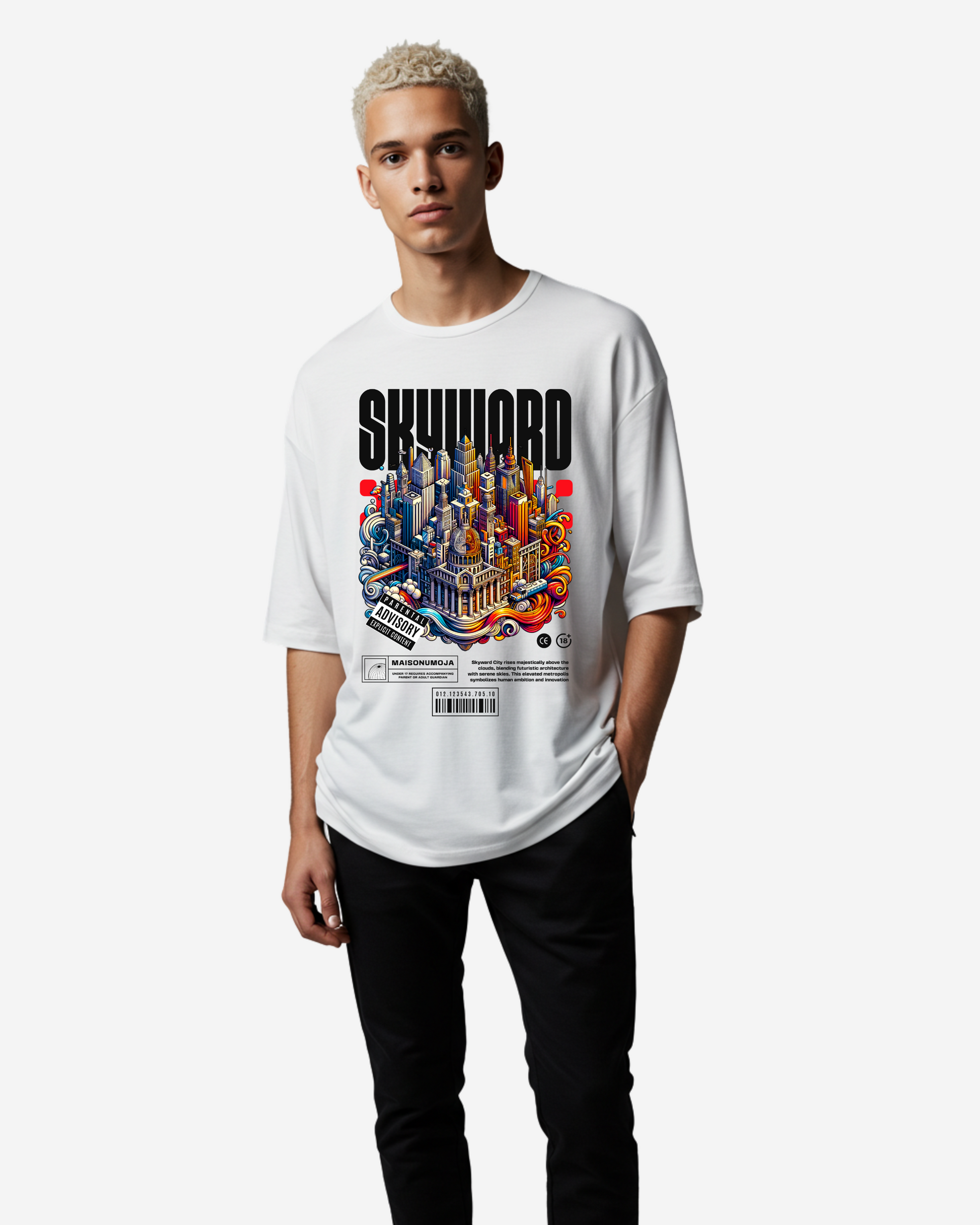Step into the energy of the city with the Skyward City Oversized T-Shirt. Featuring a bold graphic inspired by urban skylines, this tee combines a relaxed oversized fit with soft, breathable cotton for all-day comfort. Perfect for streetwear, casual looks, and effortless layering.