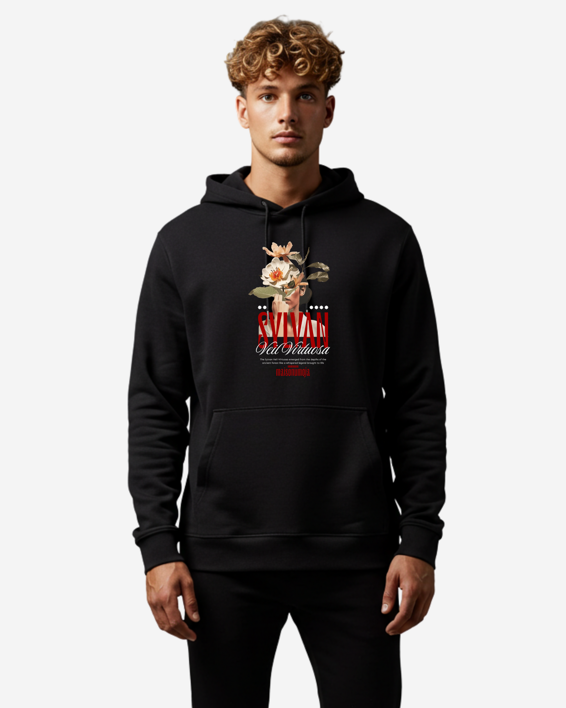 The Sylvan Veil Virtuosa Oversized Hoodie embodies the mystique of nature and artistic grace. Featuring a beautifully integrated floral veil enveloping a mysterious figure, this design represents transformation, hidden wisdom, and organic elegance. The accompanying poetic text enhances its storytelling depth, evoking a whispered legend brought to life.