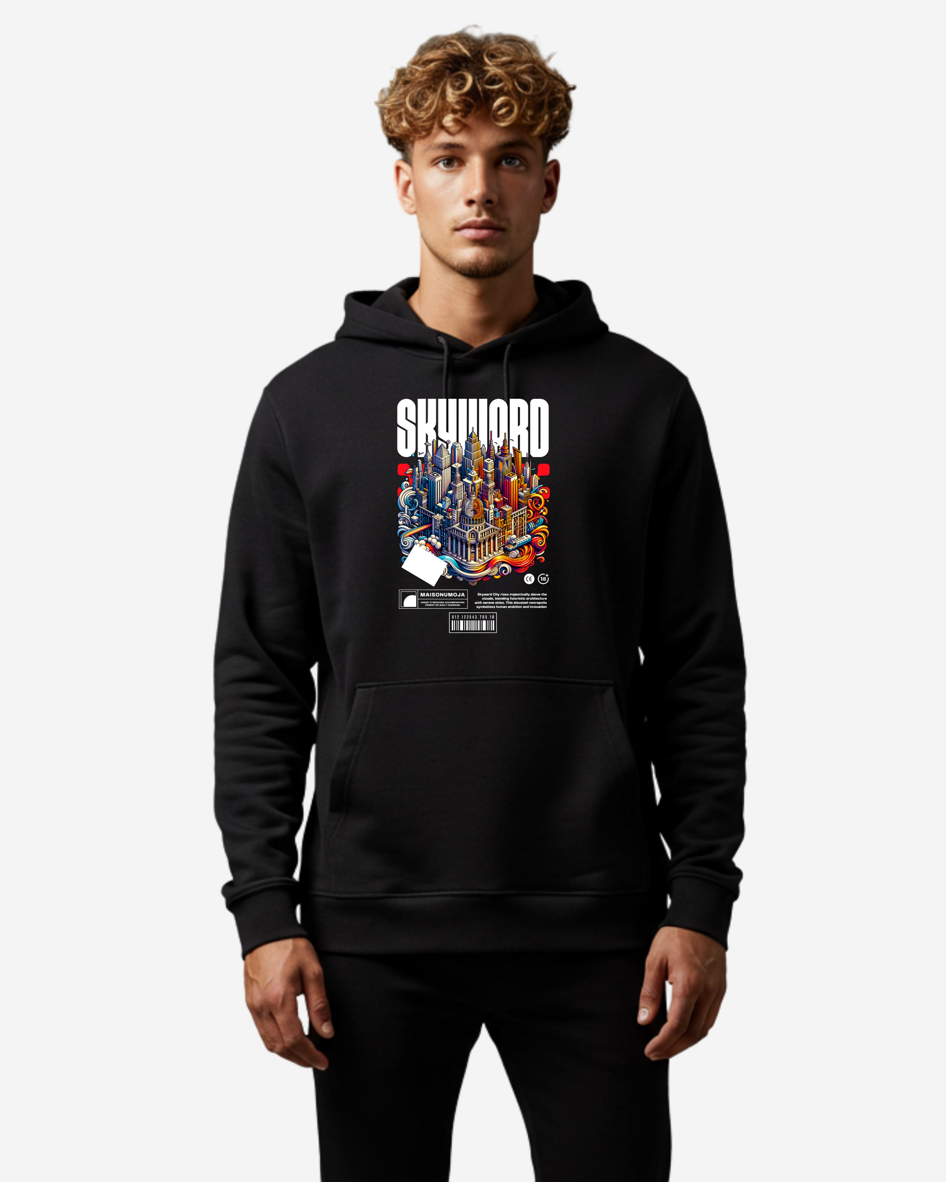 The Urban Hip Hop Cat Oversized Hoodie fuses street culture with bold feline personality. Featuring a confident cat in a red cap and headphones, surrounded by vibrant urban typography and graphic elements, this design embodies rhythm, attitude, and modern hip-hop influence.